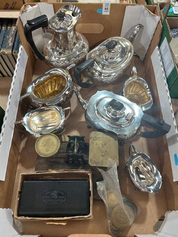Lot 65 - PLATED TEA SERVICES, LETTER SCALES ETC. PLATED TEA SERVICES, £38