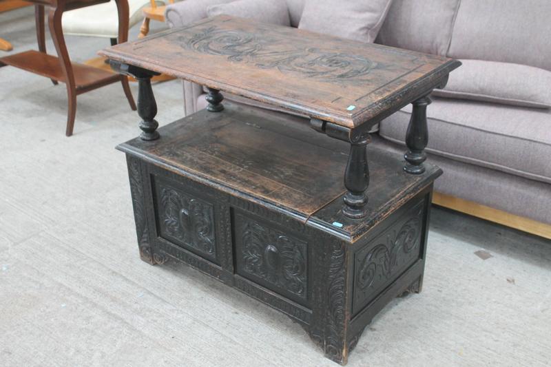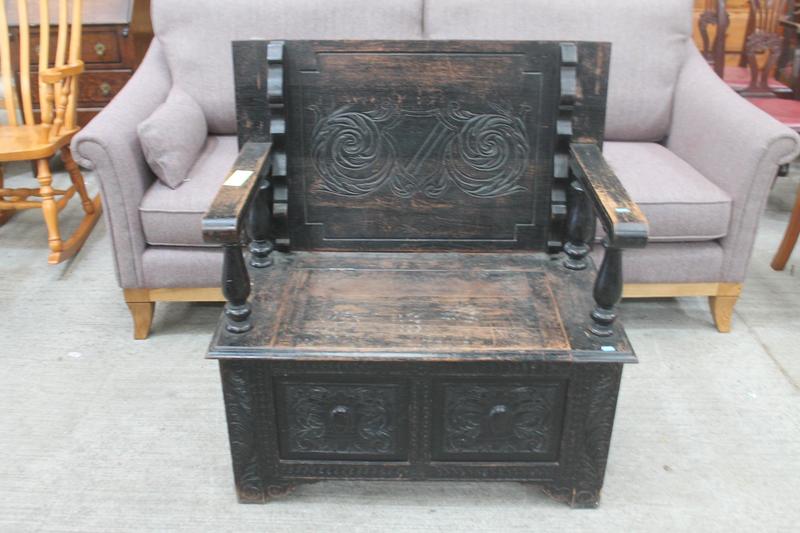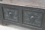 Lot 327 - CARVED DARK OAK MONKS CHEST £130