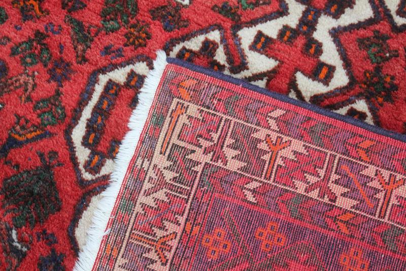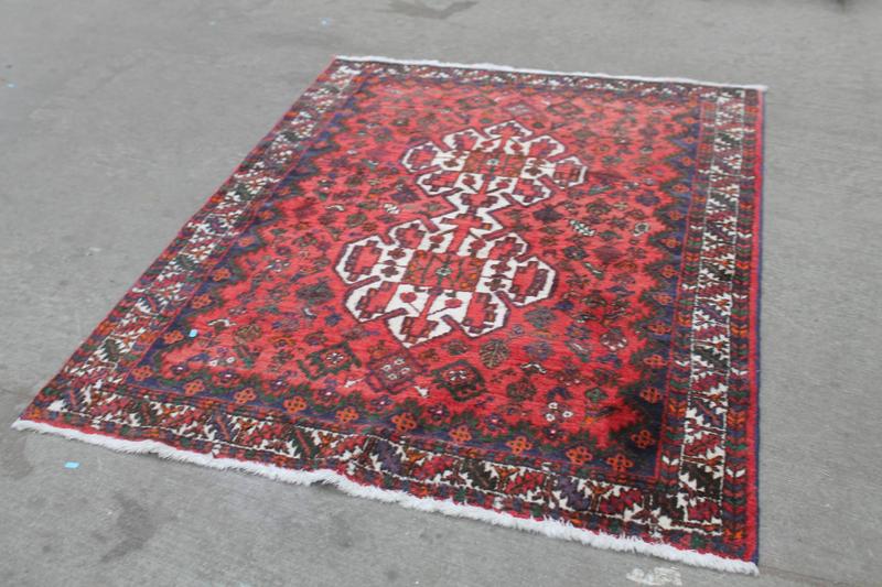 Lot 365 - DEEP RED/NAVY/CREAM/BROWN PAT.RUG £40