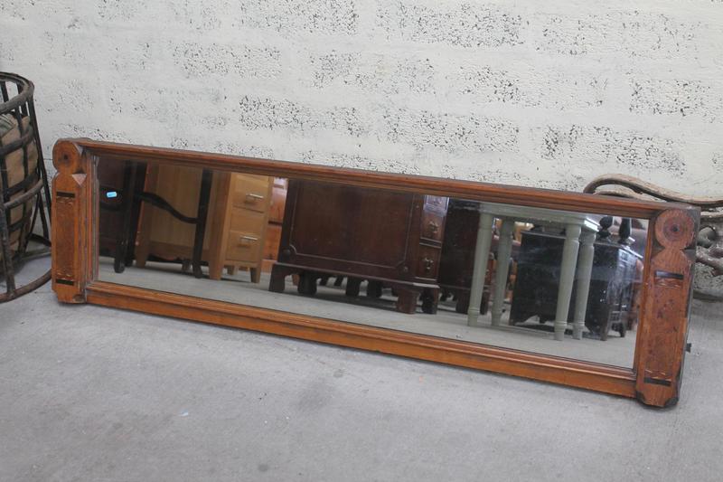 Lot 305 - OAK OVERMANTLE MIRROR WITH INLAY £50