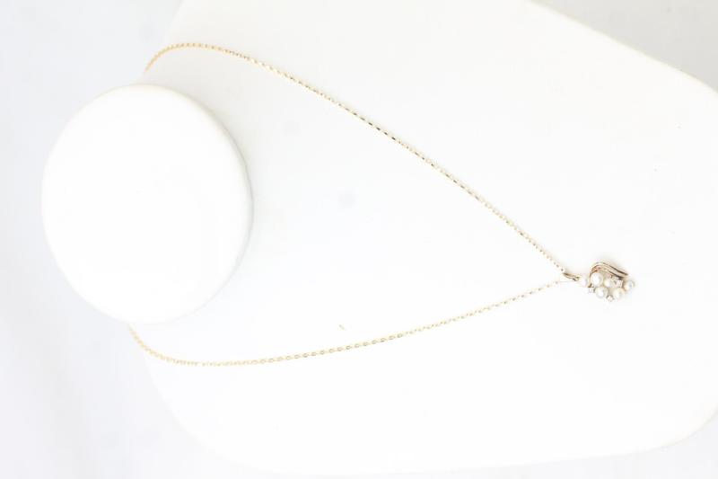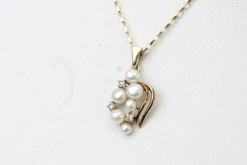 Lot 124 - 9CT GOLD, PEARL & DIAMOND PEND. & CHAIN £65