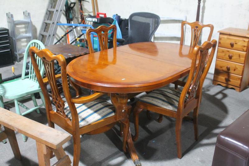 Lot 379 - YEW DINING TABLE & 4 CHAIRS £40