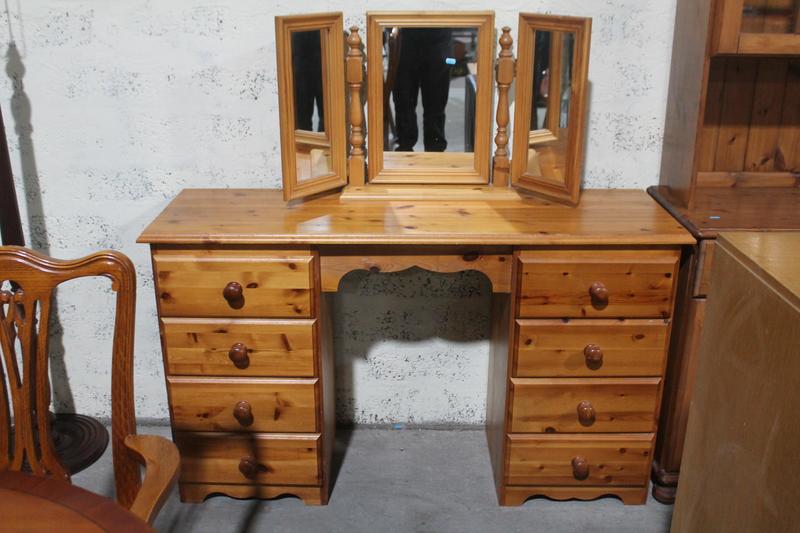 Lot 376 - PINE DRESSING TABLE WITH TRIPLE MIRROR £20
