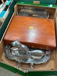 Lot 282 - TEA CHEST, METAL PAN & GRILL £22