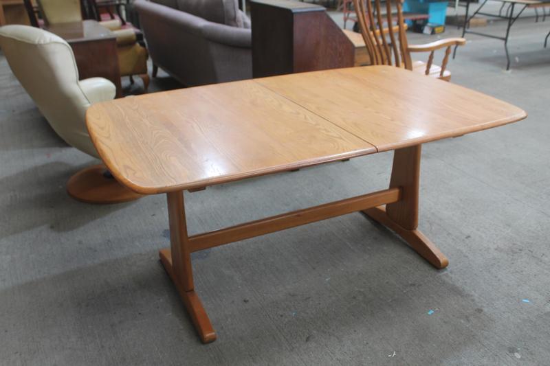 Lot 350 - ERCOL DRAW LEAF TABLE & 4 WHEEL BACK CH £30