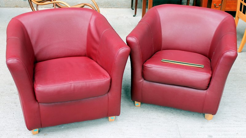 Lot 378 - Pair of red tub chairs £90 |