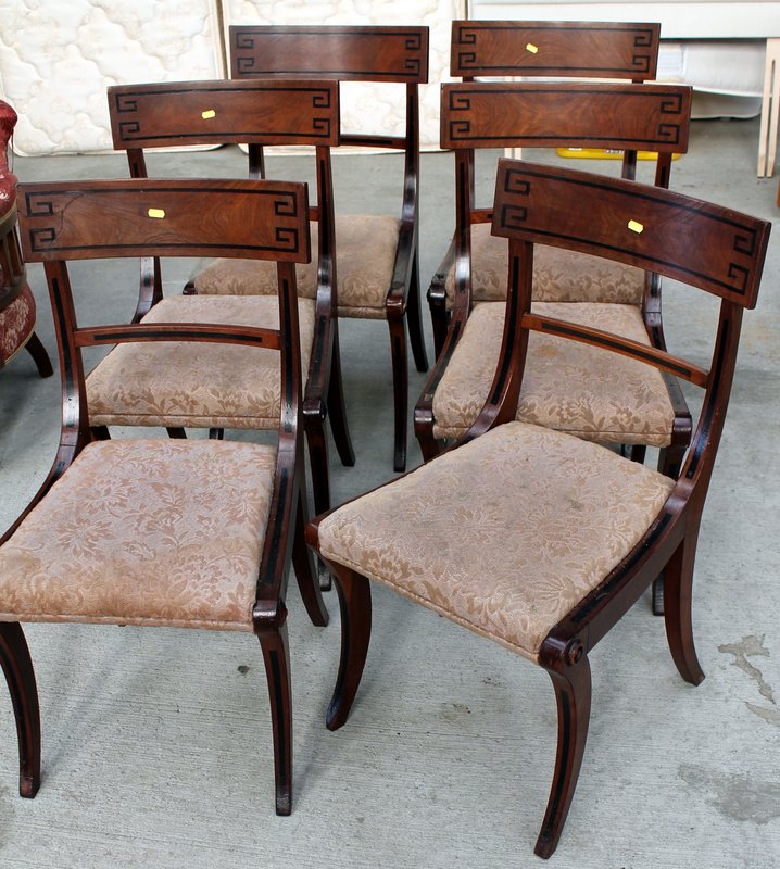 Lot 293 - Mahogany dining table 6 chairs including 2 carvers £60 |