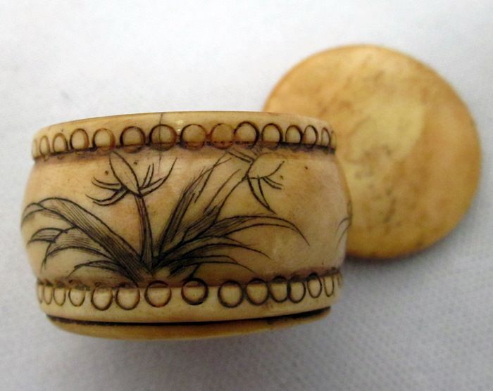 Lot 189 - Binoculars, bottle openers, snuff bottle & bone pill box etc. £30 |