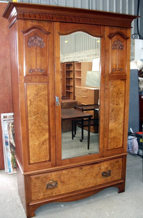 Lot 353 - Walnut and mahogany mirror door wardrobe £145 |