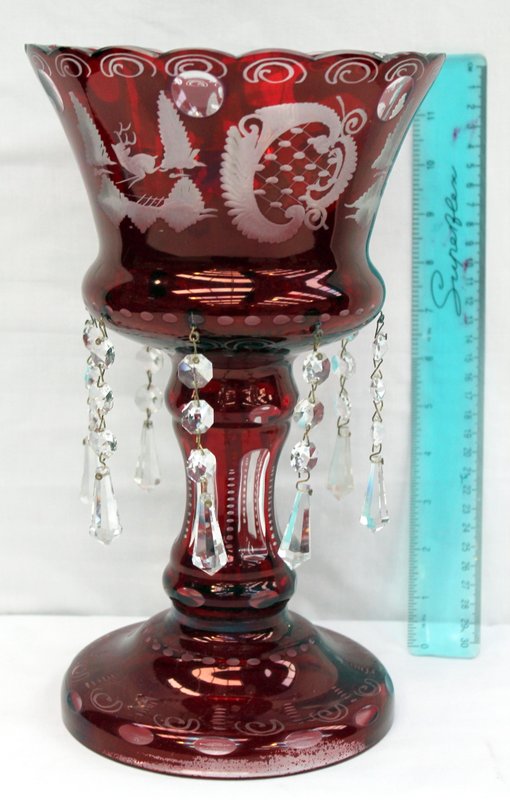 Lot 142 - Bohemian etched glass lustre table centre £60 |