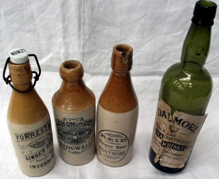Lot 223 - Ginger beer bottles etc (local interest) and Dalmore whisky £30 |