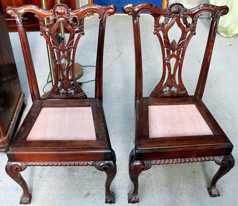 Lot 307 - 2 pierced splat with leaf scroll carving backed chairs with carved cabriole legs £20 |