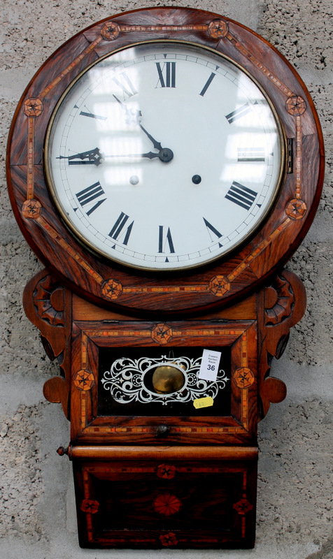Lot 36 - Inlaid mahogany wall clock £120 |