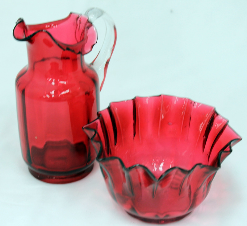 Lot 148 - Coloured glass planter and pitcher £22 |