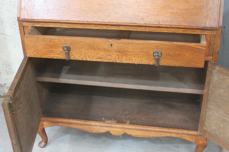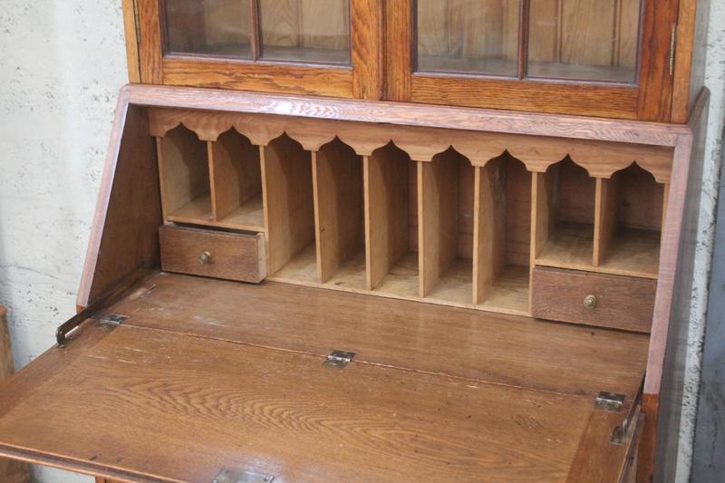 Lot 380 - OAK BUREAU BOOKCASE £25