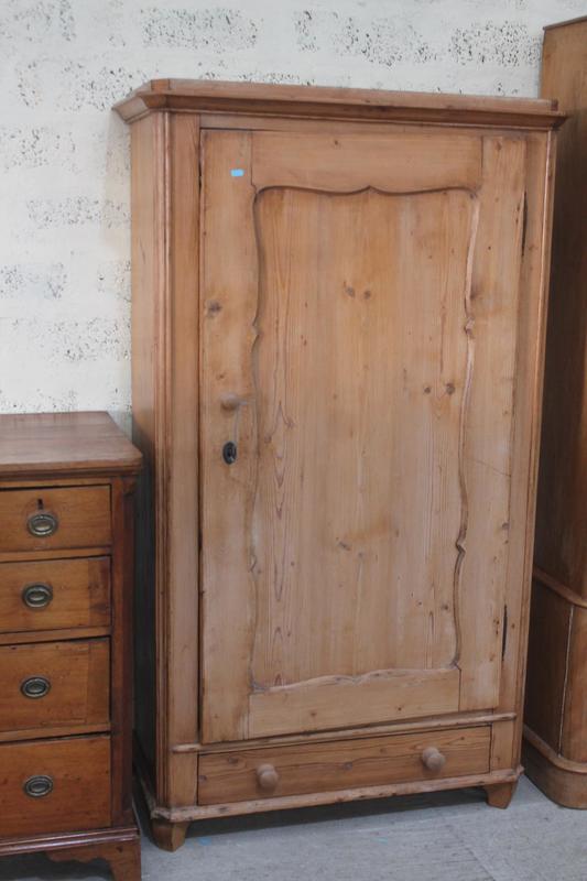 Lot 388 - PINE WARDROBE WITH DRAWER BASE £210