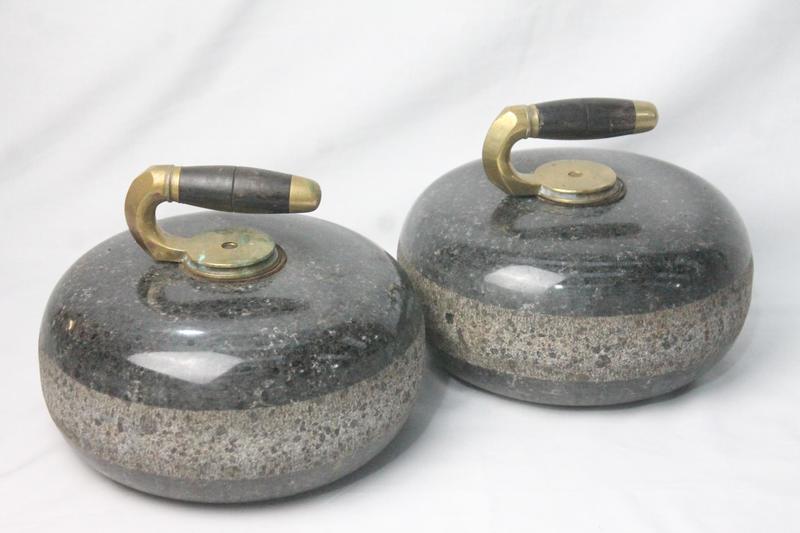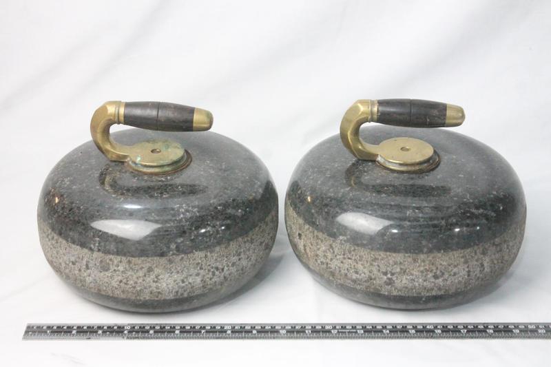 Lot 10 - PR BLACK CURLING STONES - WOODEN CASED £240