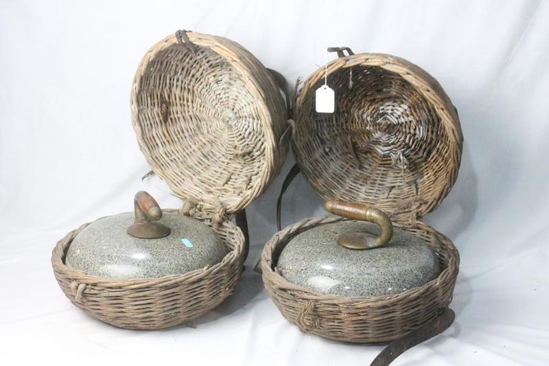 Lot 3 - PR CURLING STONES - WICKER CASED £170