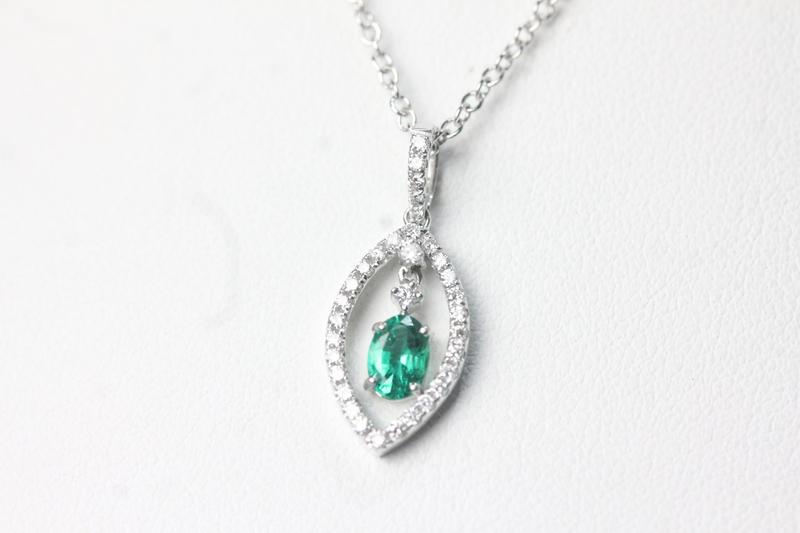 Lot 110 - 18CT W/GOLD DIA. & EMRLD PEND. & 10CT CH £140