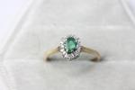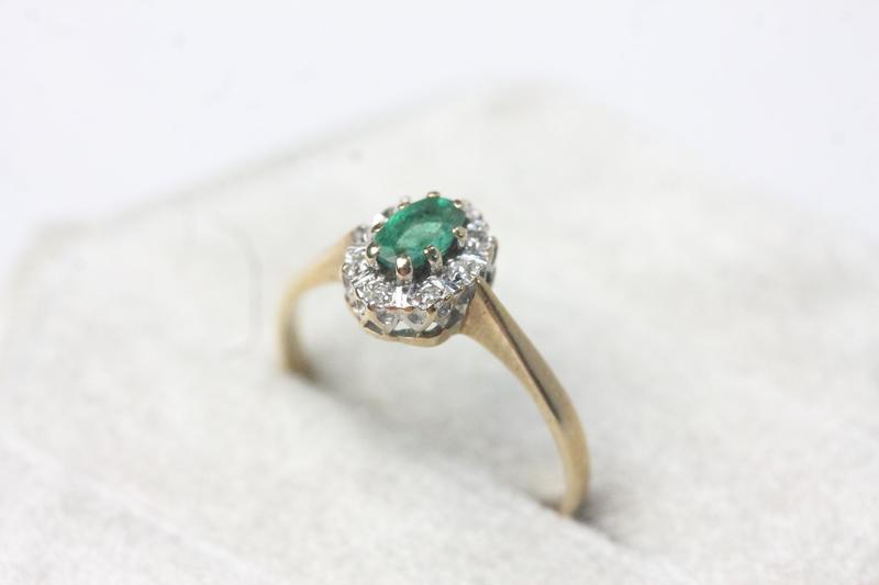 Lot 124 - 9CT GOLD GREEN & WHITE STONE RING £120