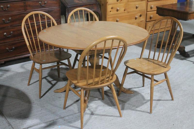 Lot 369 - ERCOL EXTENDING TABLE & 4 CHAIRS - LIGHT £620
