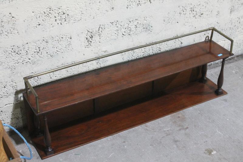 Lot 328 - MAHOGANY HANGING SHELF - BRASS GALLERY £55