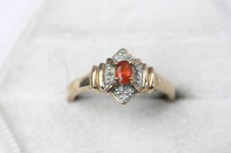 Lot 125 - 9CT GOLD ORANGE & WHITE STONE RING £130