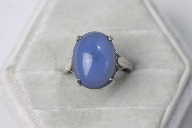 Lot 138 - SILVER & BLUE CABOCHON RING £38