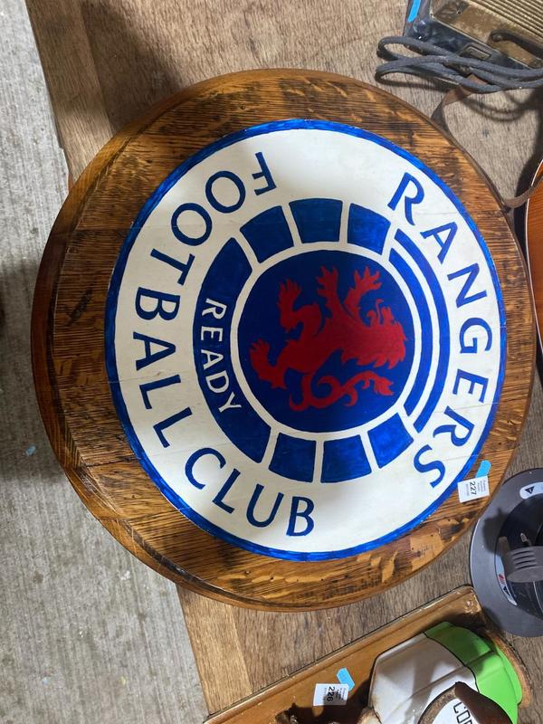 Lot 366 - DRUM SIDE TABLE - GREEN LEATHER INSERT £100