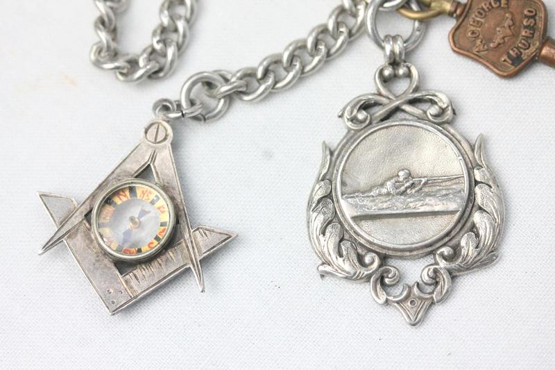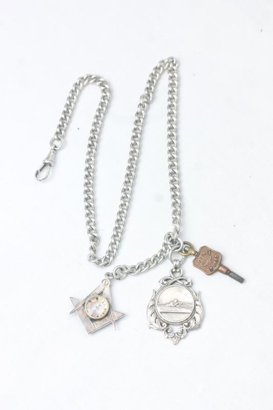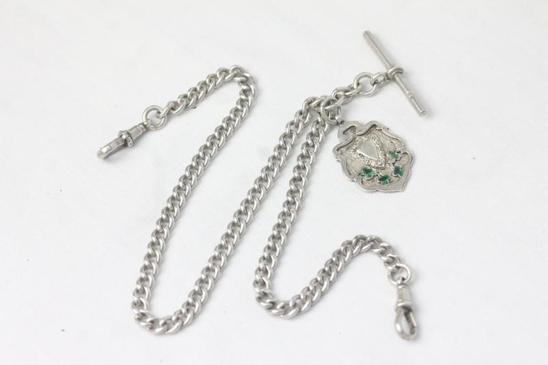 Lot 145 - SIVLER DOUBLE ALBERT P.WATCH CHAIN & FOB £35