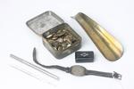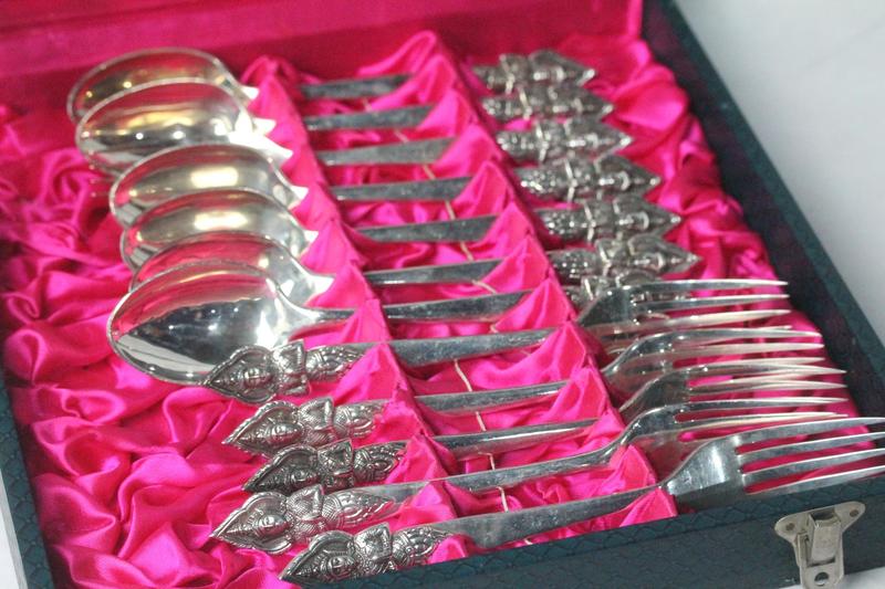 Lot 82 - CUTLERY, METAL BOX, WOODEN EGGS ETC CUTLERY, METAL BOX, £22