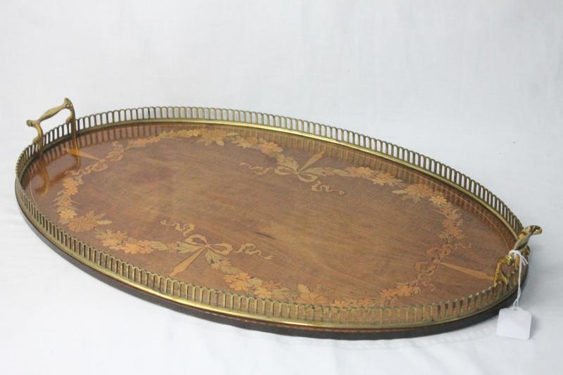 Lot 27 - INLAID MAHOGANY & BRASS GALLERY TRAY £55