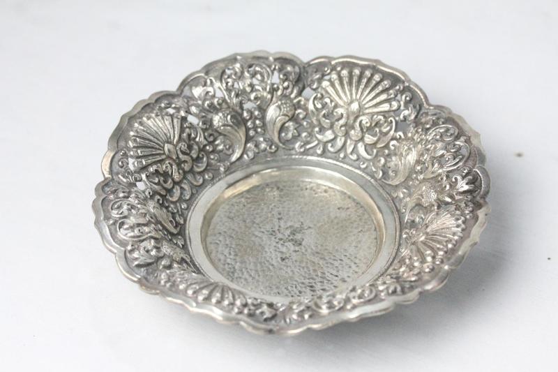 Lot 114 - FOLIAGE CANDLE STAND, ASHET, MIRROR ETC £35