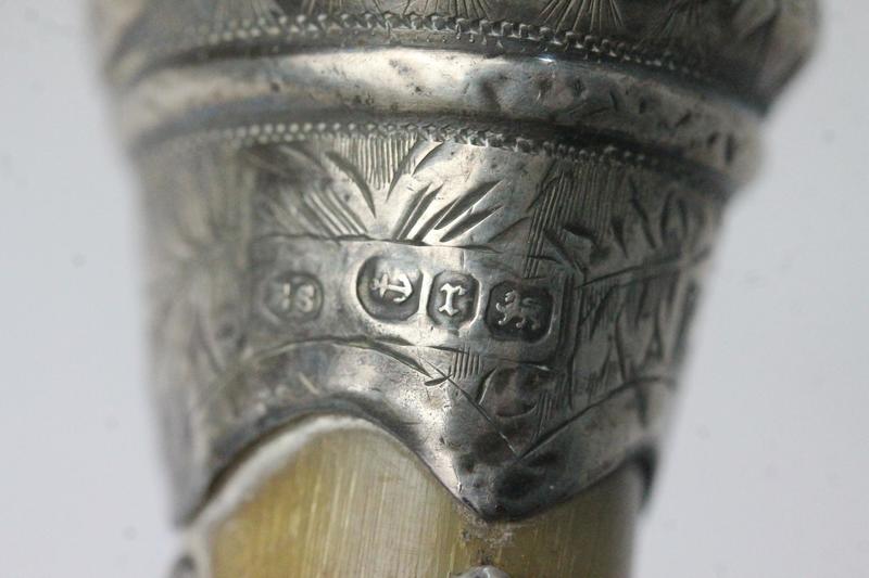Lot 7 - SILVER & EBONY WALKING CANE - STAG HANDL NOT SOLD - RESERVE £100