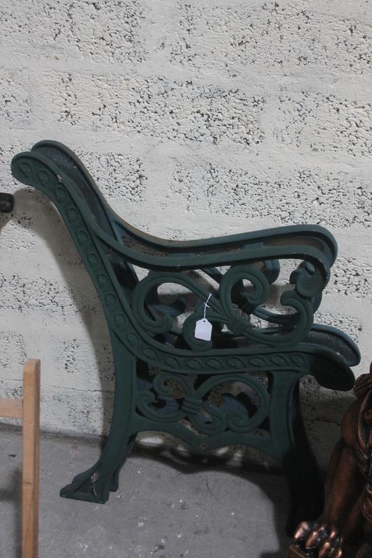 Lot 515 - GREEN & METAL BENCH ENDS GREEN & METAL BENCH £50