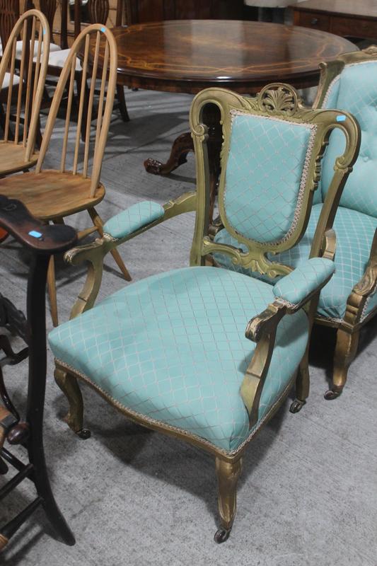 Lot 470 - PR CONTINENTAL PAINTED FRAME ARMCHAIRS £140