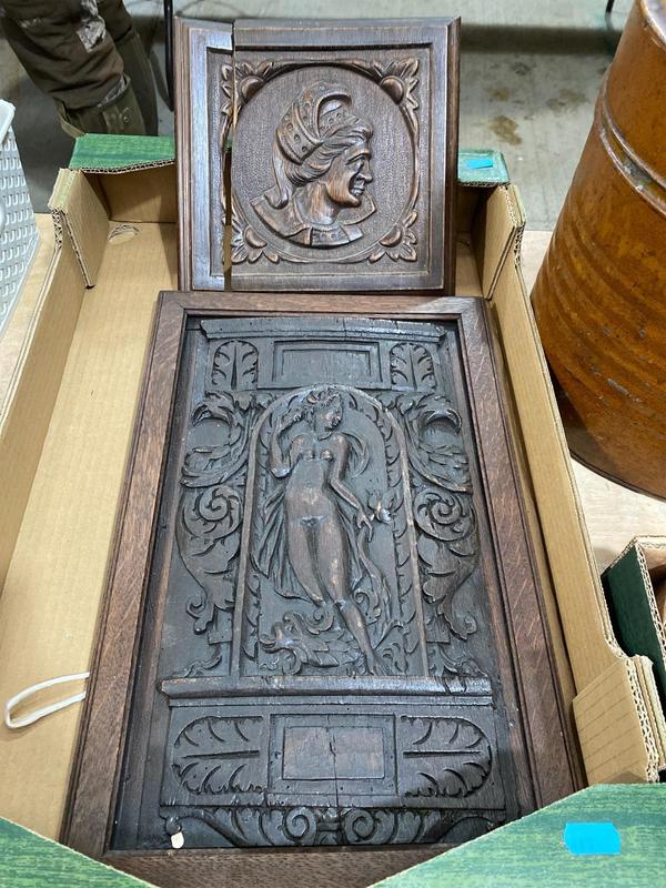 Lot 36 - 2 CARVED WOODEN PANELS 2 CARVED WOODEN PANE £35