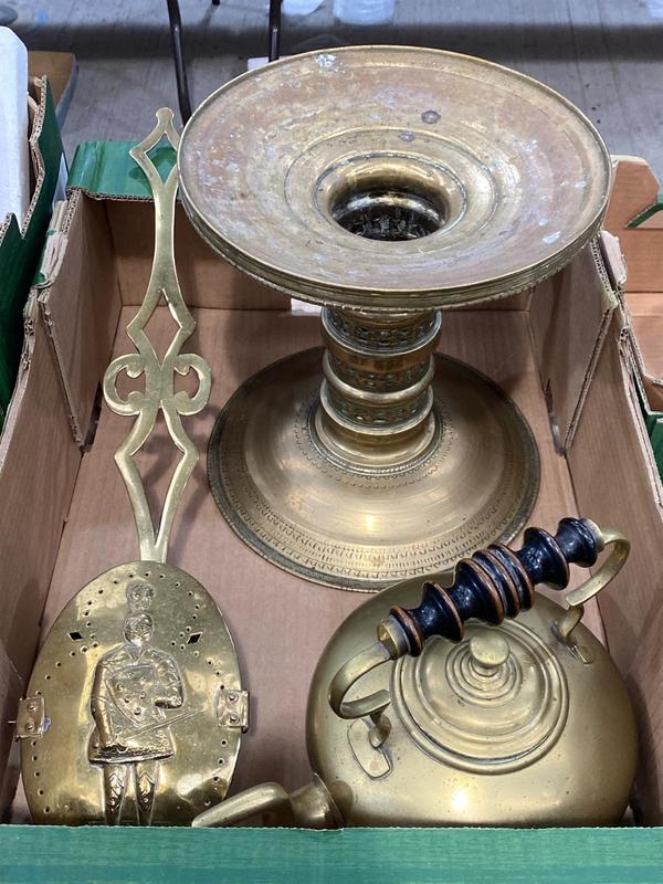 Lot 113 - BRASS KETTLES & COPPER MEASURE BRASS KETTLES & COPP £45