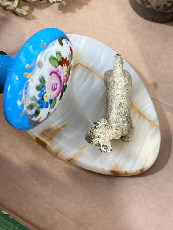 Lot 83 - COLD PAINTED DOG ON ONYX, DOOR KNOBS ETC COLD PAINTED DOG ON £45