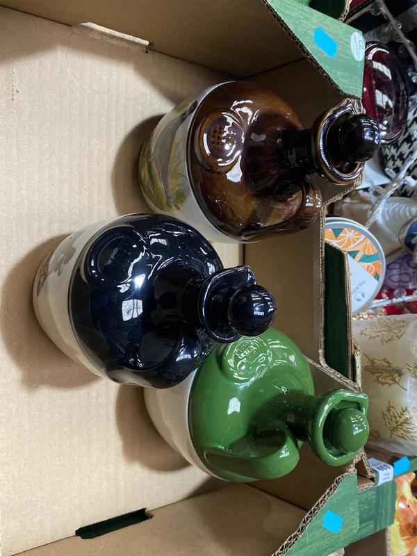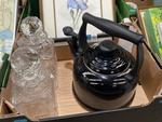 Lot 368 - LE CREUSET KETTLE - BLACK & DECANTERS LE CREUSET KETTLE - £32
