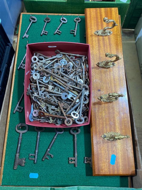 Lot 347 - COAT RACK, KEY BOARD & BOX OF KEYS COAT RACK, KEY BOARD £40