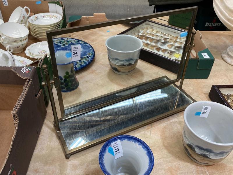 Lot 330 - PINE/CORK FRAME MIRROR & 2 DUCK PRINTS
