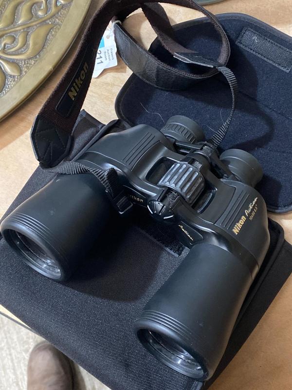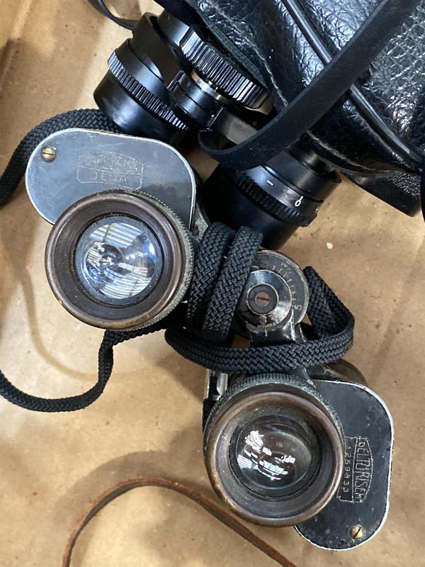 Lot 255 - BINOCULARS, TINS, FLASKS, BOWL ETC.