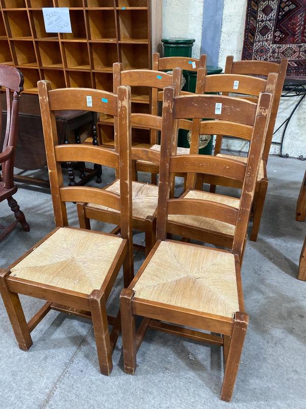 Lot 354 - 6 RUSTIC PINE RUSH SEAT KITCHEN CHAIRS