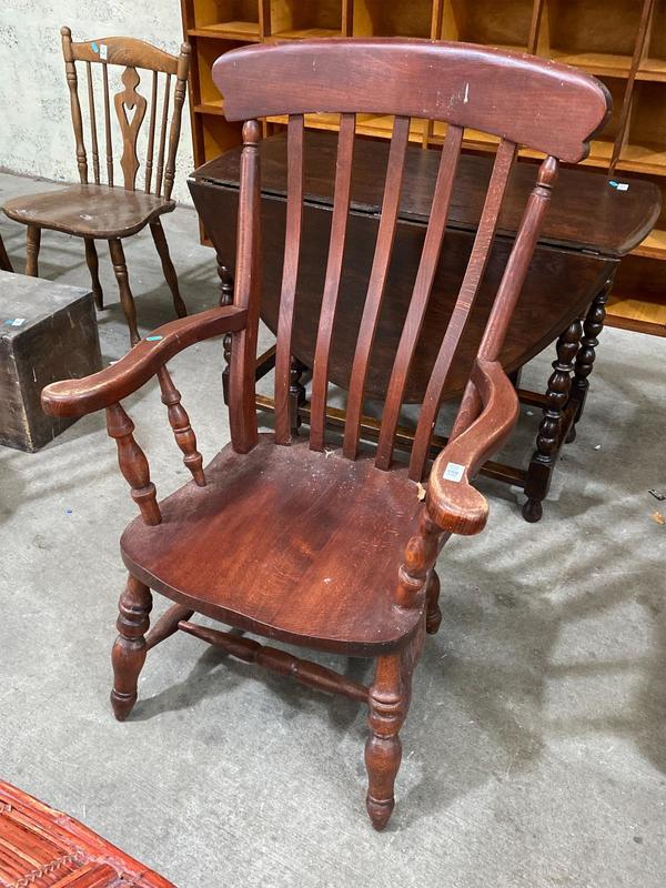 Lot 359 - LARGE STAINED BEECH OPEN ARMCHAIR