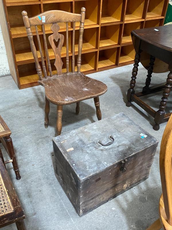Lot 362 - SMALL WOODEN TRUNK & KITCHEN CHAIR
