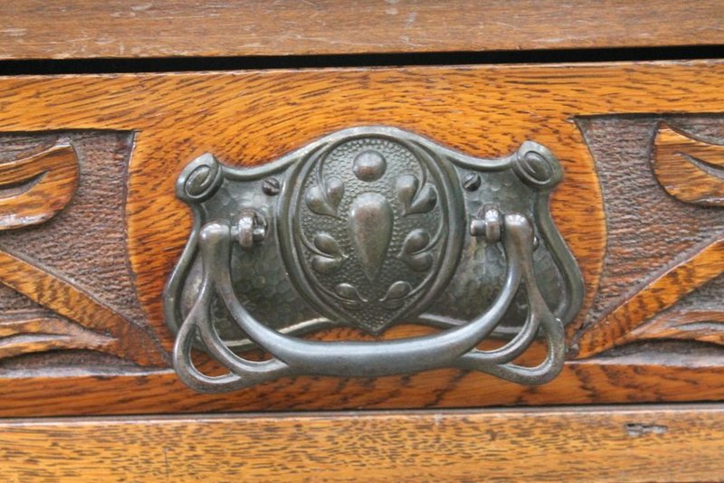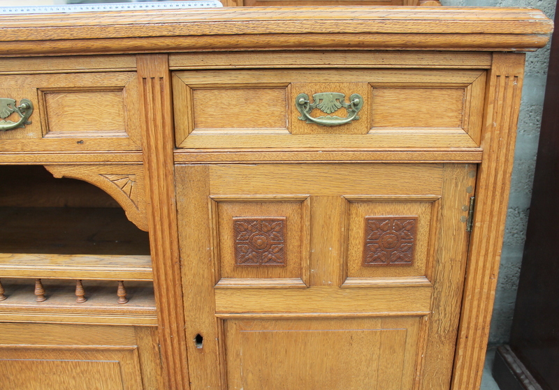 Lot 389 - Carved Oak arts & crafts mirror backed sideboard £170