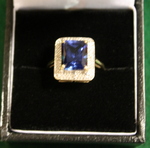 Lot 150 - 9ct Ceylon Blue Stone & Diamond Ladies Ring (Size J 1/2) NOT SOLD - RESERVE £120