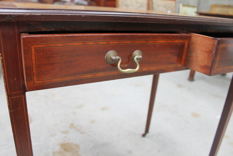 Lot 337 - Liberty London leather topped inlaid mahogany side table £65