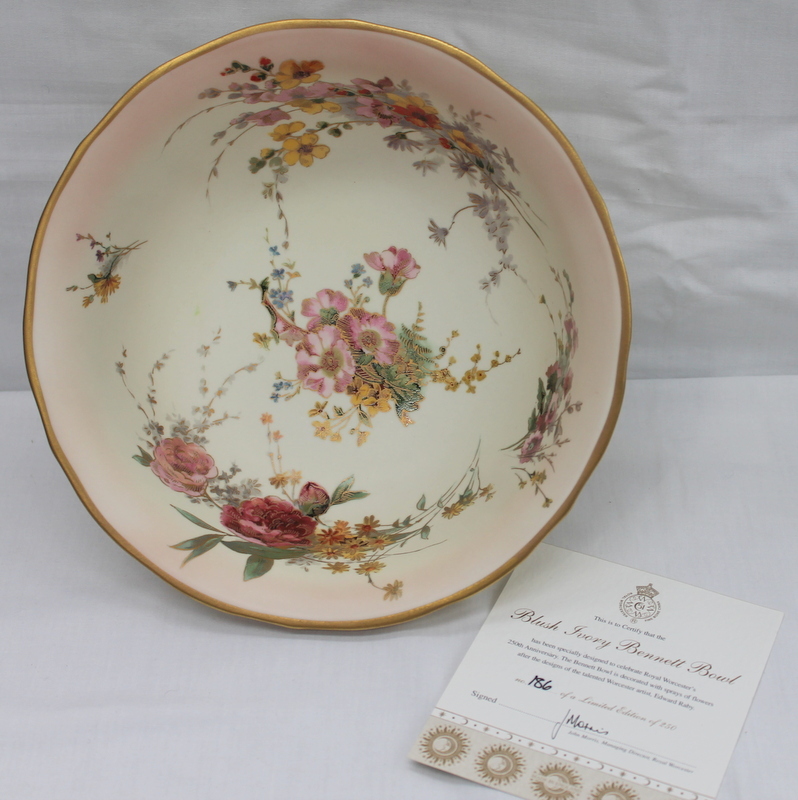 Lot 103 - Royal Worcester Blush Ivory Bennett bowl with certificate £60